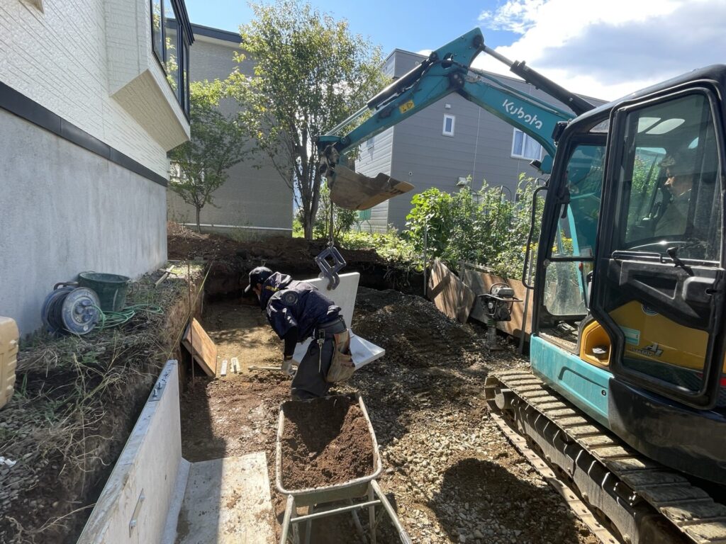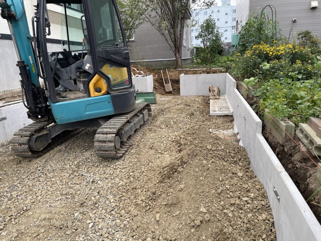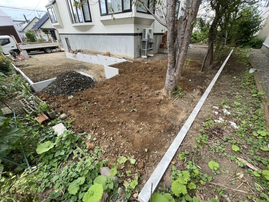 来年駐車場をアスファルトにする予定なので下地として30㎝砕石も入れてあります。
